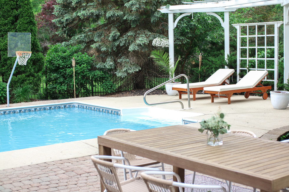 Furniture and decor: We put the grill by the brick of the house which I think is a great place for now. The rugs are from ruggable and are washable!! So I'm going to wash them each fall when we bring them in for the winter. The other furniture we cover with waterproof covers to keep everything clean. In the winter we'll bring those in too. Honestly it'd be nice to have a covered patio but those get pricy when you get a roof on them etc. Basement and garage storage for now :) Eventually I also want a propane fire pit table like this to replace the coffee table I got. Full disclosure I'm so mad it doesn't match the sofa and chairs. The picture online was so different and I tried to tone down the red/brown colors in the photos but if you look on my insta stories it's not a good color :(